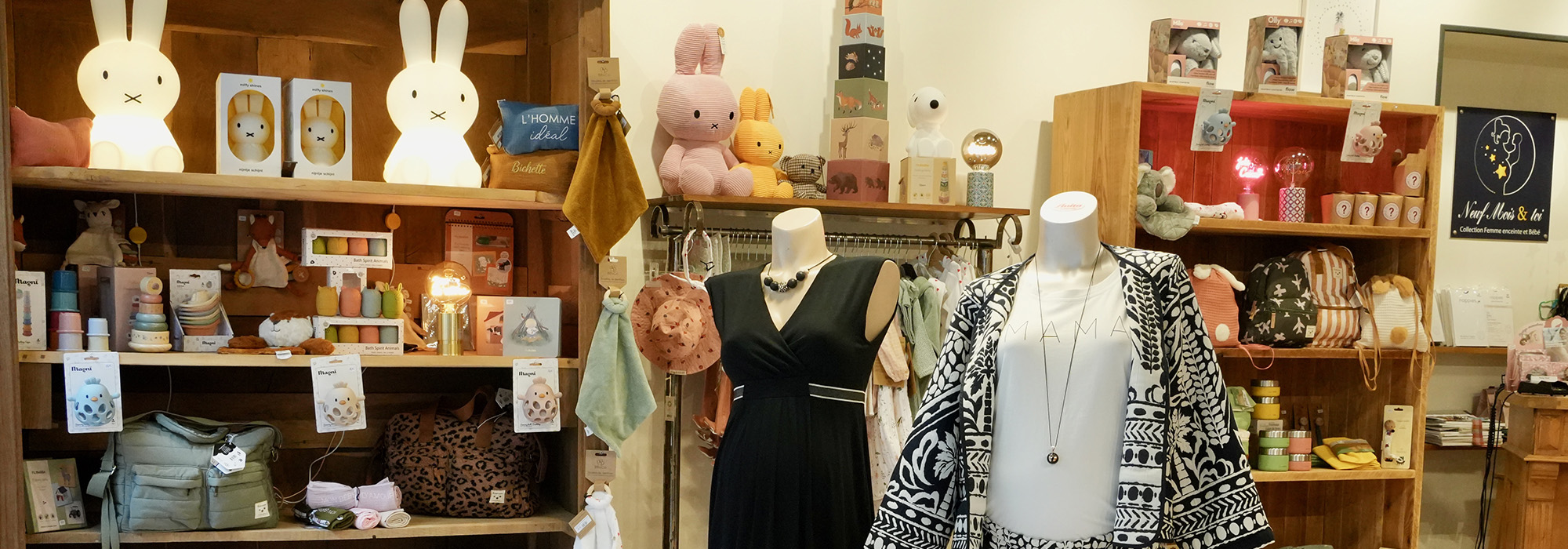 Neuf Mois & toi est la seule boutique spécialisée dans la mode et les accessoires pour future maman et bébé et dans la décoration enfantine.