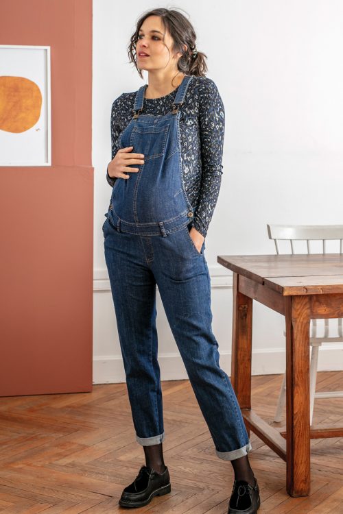 Salopette grossesse et maternité en jean bleu stone
