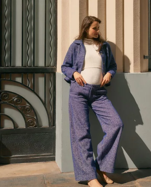 Pantalon large tweed bleu