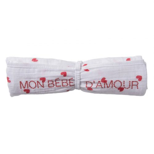 Lange en double gaze de coton gaufré blanc imprimé cœurs