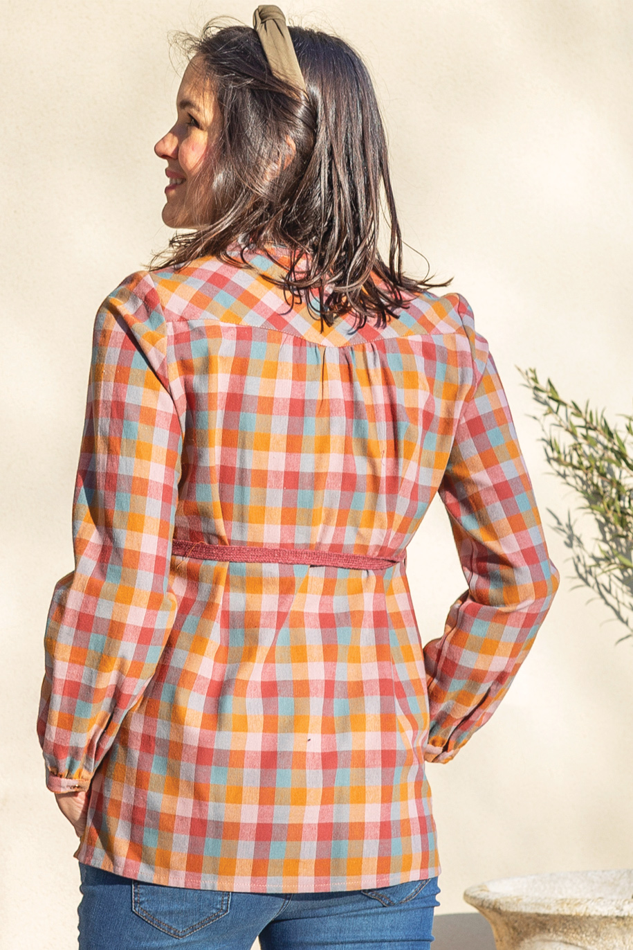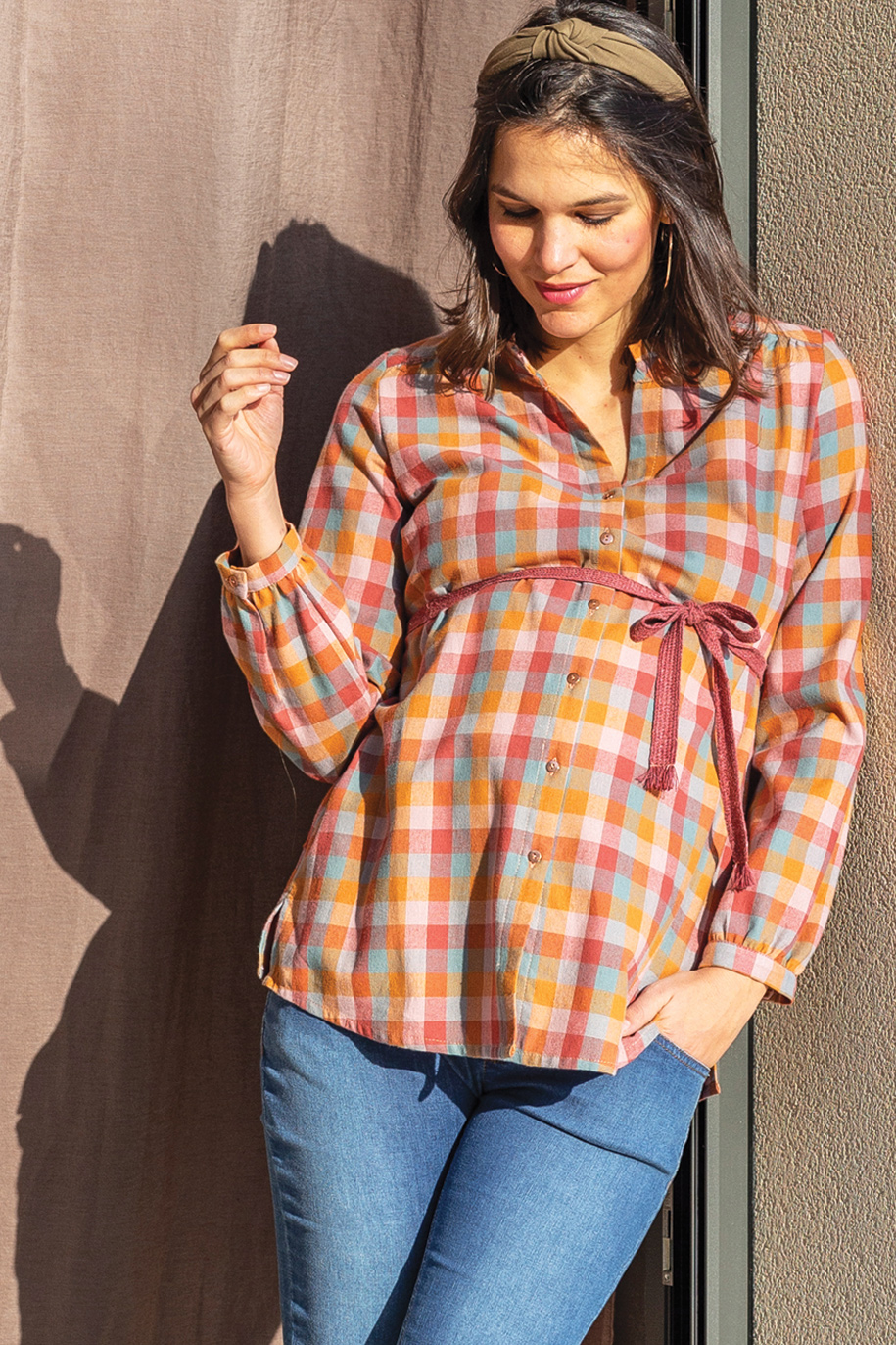 Chemise de maternité dans un joli carreau en coton légèrement gratté, doux et confortable.