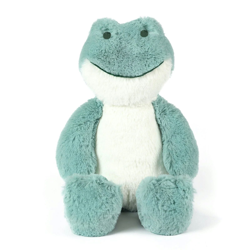 Une peluche ultra douce à câliner ! Cette jolie grenouille d’une irrésistible douceur est fabriqué avec amour avec des matériaux durables et de qualité en suivant un processus de fabrication équitable et socialement responsable. Ses bras, jambes et ventre sont lestés pour assurer une meilleure tenue et permettre une position assise.