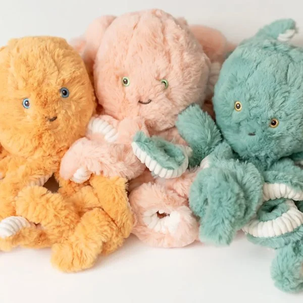 Une peluche d’une irrésistible douceur à câliner sans modération ! Ce joli poulpe est fabriqué avec amour avec des matériaux durables et de qualité en suivant un processus de fabrication équitable et socialement responsable.Existe en Bleu céladon ou Rose des sables. Hauteur : 25 cm.