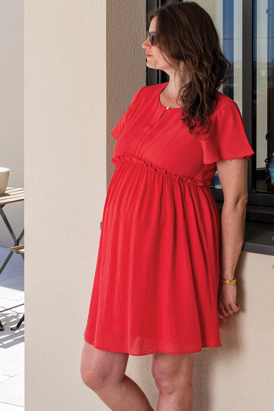 Chic et raffinée la jolie robe de maternité Célestine dans un crépon plissé.