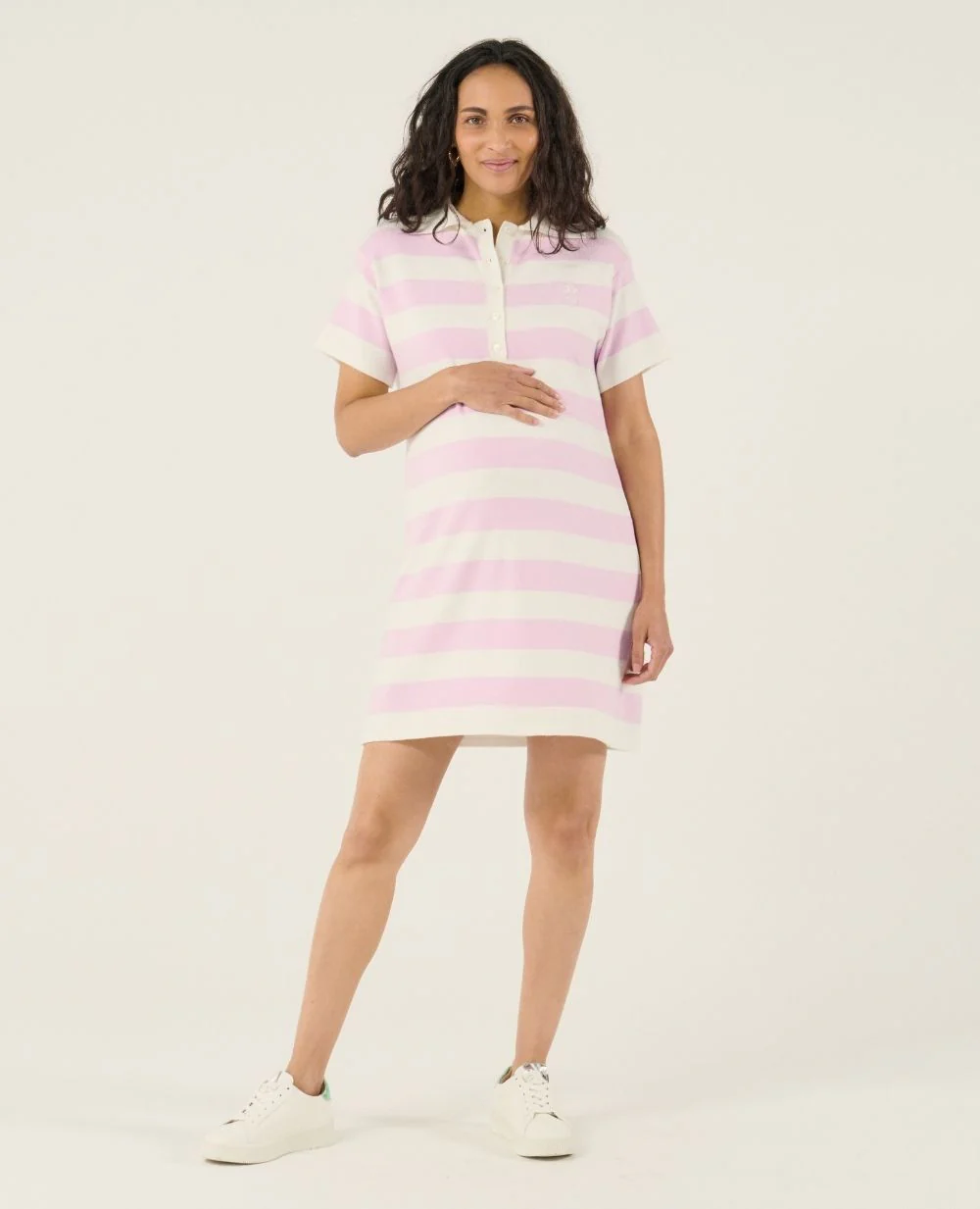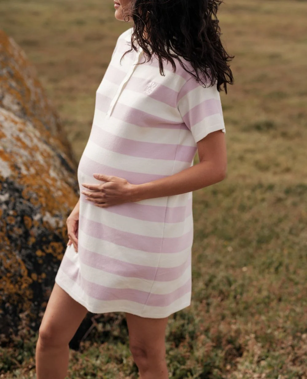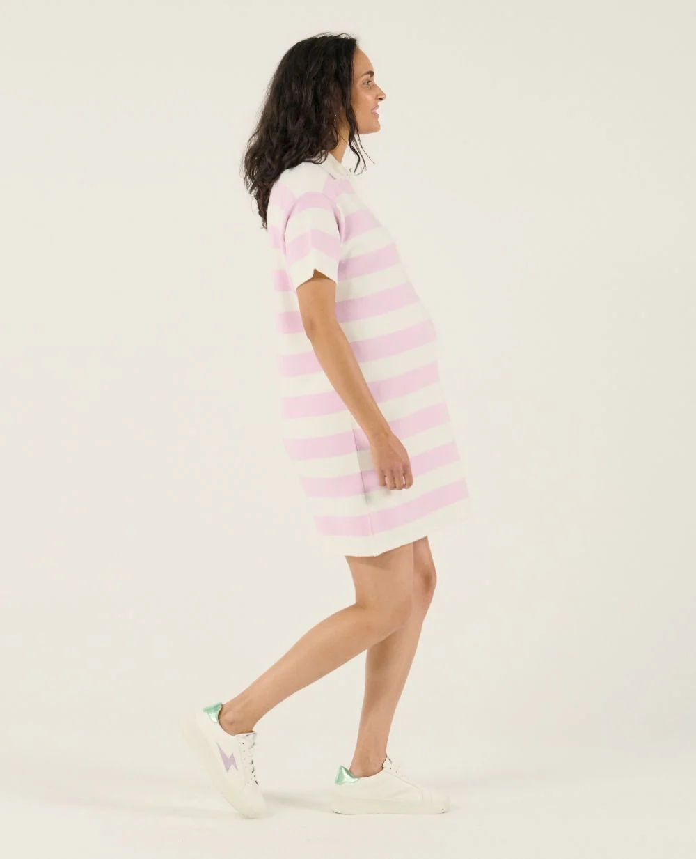 Découvrez la Robe d’allaitement Hamptons Parme, une robe polo rayée qui marie style casual et élégance sportive pour un look décontracté chic.