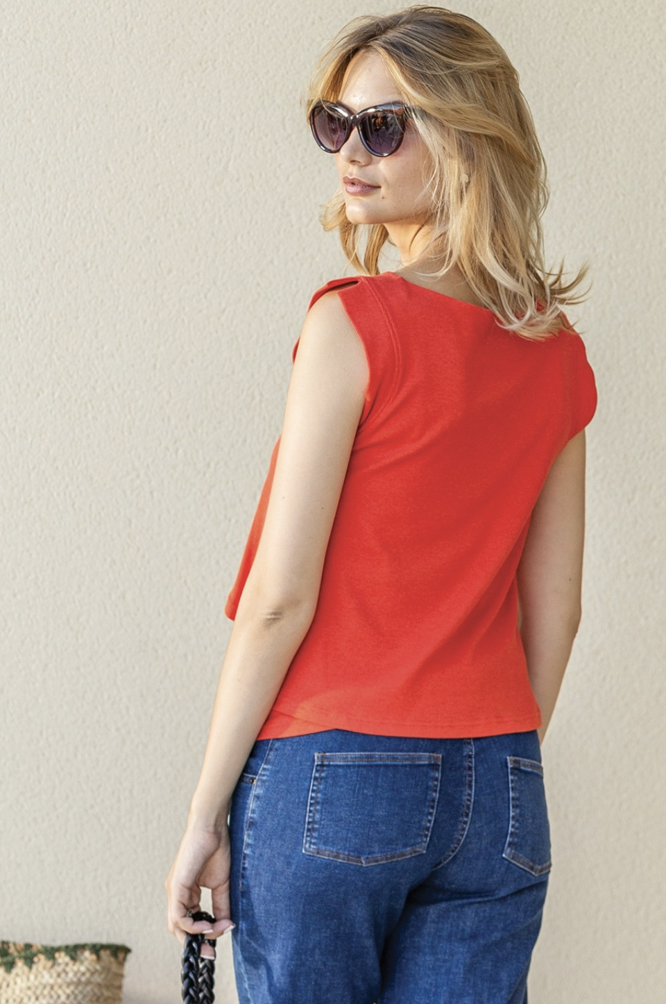 Confortable, doux et fluide dans un beau jersey côtelé rouge tomato ou marin.